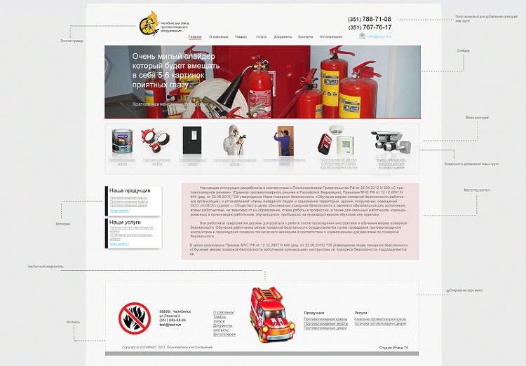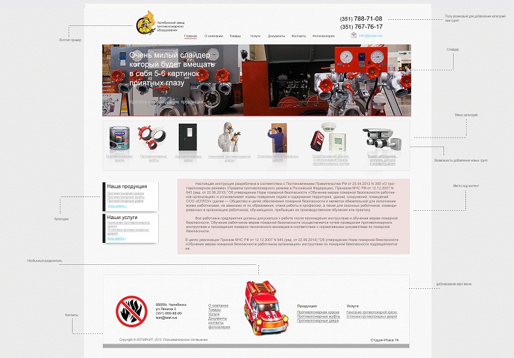 Бизнес-сайт для компании "Челябинский завод противопожарных изделий"