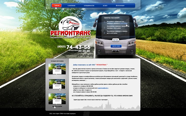 Сайт-визитка компании "Регионтранс"